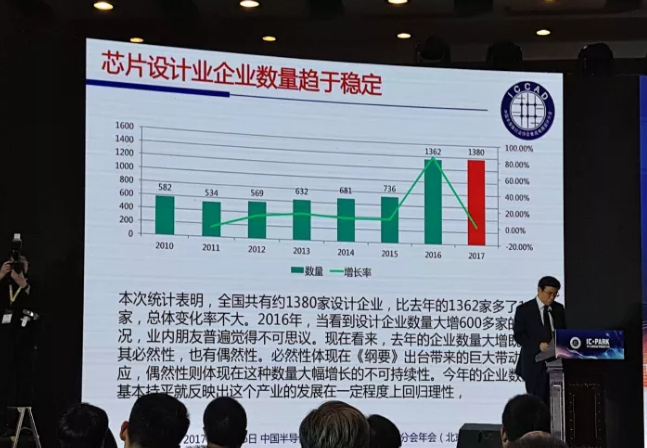 芯片設計企業(yè)數量趨于穩(wěn)定,統(tǒng)計表明,全國共有約1380家設計企業(yè),比去年的1362家多了18家,總體變化率不大。