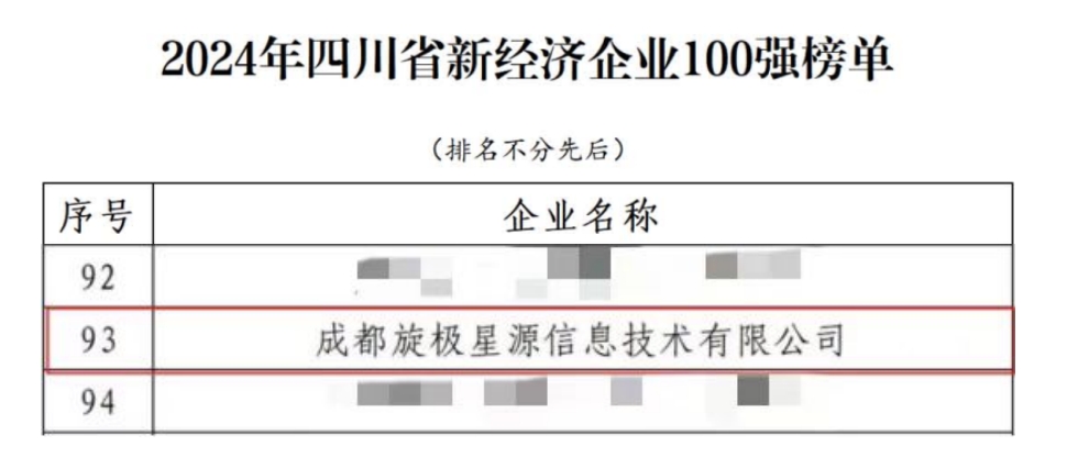 近日,四川省工業(yè)和信息化研究院研究發(fā)布了“2024年四川省新經(jīng)濟(jì)企業(yè)100強(qiáng)榜單”,成都旋極星源信息技術(shù)有限公司成功上榜,這是繼2023年后旋極星源再度上榜,證明了其在電子信息領(lǐng)域的強(qiáng)大研發(fā)實(shí)力和持續(xù)創(chuàng)新能力。